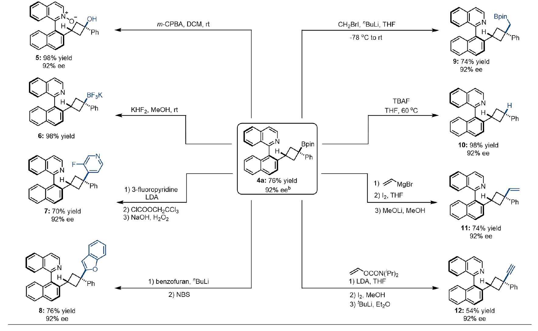 上??萍即髮W(xué)高得偉課題組Nat. Commun.:基于環(huán)張力釋放策略實(shí)現(xiàn)軸手性環(huán)丁烷硼酸酯的不對(duì)稱(chēng)合成