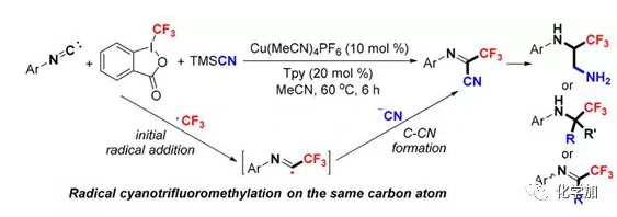 華東理工大學(xué)劉培念教授課題組Org. Lett. 同碳上的氰基三氟甲基化反應(yīng):步驟經(jīng)濟(jì)性合成三氟甲基取代的腈、胺、亞胺