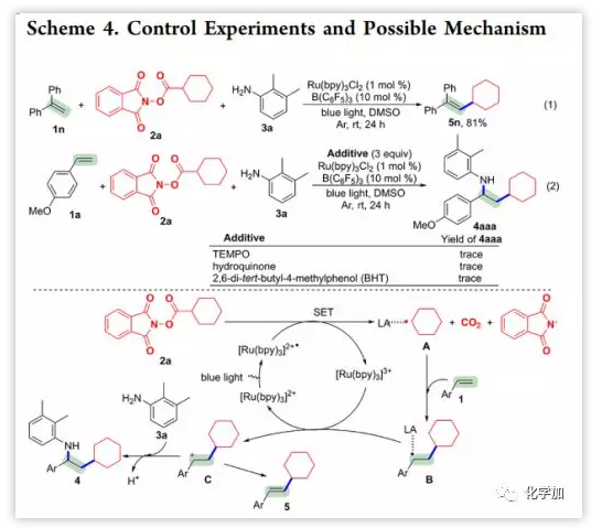 南昌航空大學(xué)李金恒教授課題組Org. Lett.:光催化苯乙烯、烷基N-羥基鄰苯二甲酰亞胺酯和胺的三組分反應(yīng)