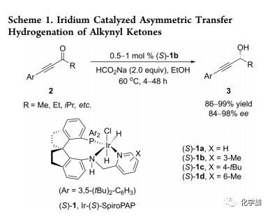 光學(xué)活性的炔丙醇在生物活性天然產(chǎn)物和其他有機(jī)合成中是重要合成砌塊,而炔基酮的催化不對(duì)稱氫化是構(gòu)建手性炔丙醇的最直接方法。自從1997年由Noyori課題組報(bào)道了使用i-PrOH/KOH作為氫供體、Ru...