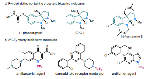 近日,中山大學李清江/王洪根發(fā)展了一種穩(wěn)健且操作簡單的方法,通過級聯(lián)序列從色胺衍生的異氰化物中組裝出含N-CF3的吡咯并吲哚啉骨架。成功的關(guān)鍵在于開發(fā)了一種使用市售試劑 N-鹵代琥珀酰亞胺和Et3N·...