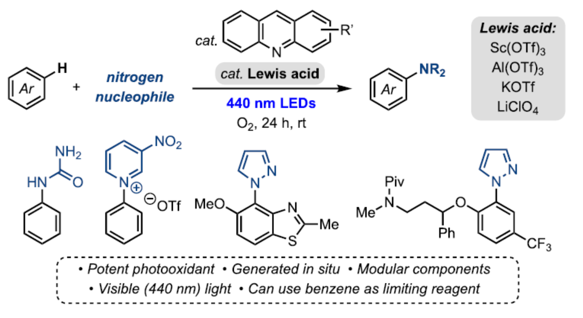 JACS:利用吖啶?Lewis酸配合物實現(xiàn)可見光光催化芳烴的C?H胺化反應(yīng)