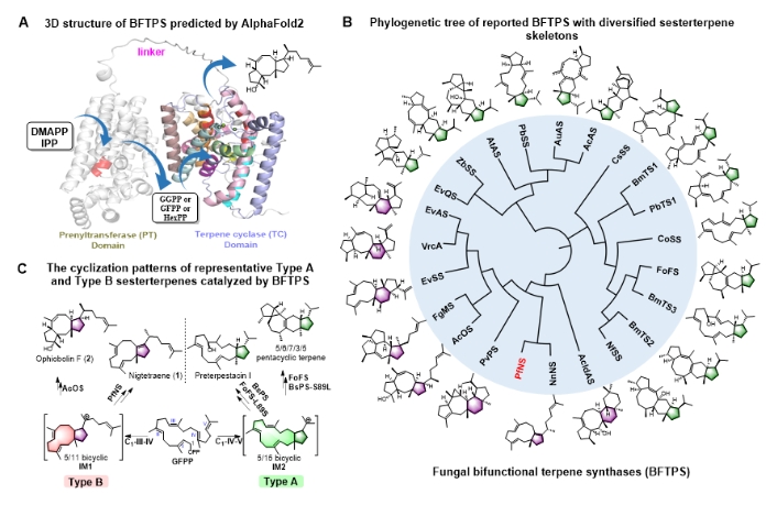 2024年6月27日,華東理工大學(xué)張立新教授團(tuán)隊劉雪婷課題組在雙功能萜合酶的設(shè)計改造方面取得新進(jìn)展,相關(guān)工作以“Function Switch of a Fungal Sesterterpene Sy...