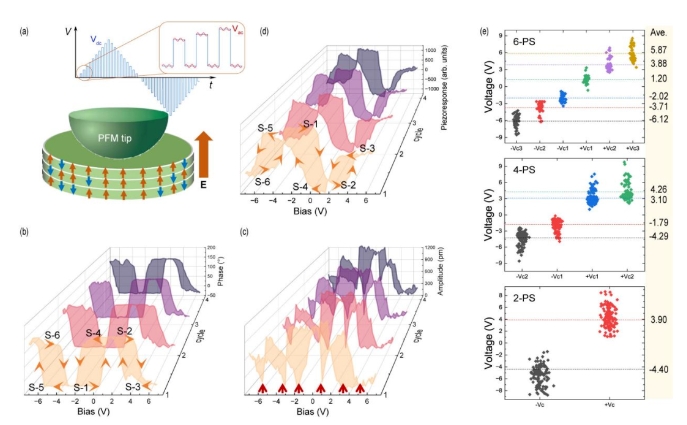 近期,西安交通大學(xué)與中國(guó)科學(xué)技術(shù)大學(xué)、湖南師范大學(xué)、南京大學(xué)等單位合作,在二維層狀反鐵電材料實(shí)驗(yàn)研究中取得突破性進(jìn)展,在該體系中首次獲得本征六重極化態(tài),提出了垂直鐵電/反鐵電疇堆疊耦合實(shí)現(xiàn)的本征六態(tài)和...