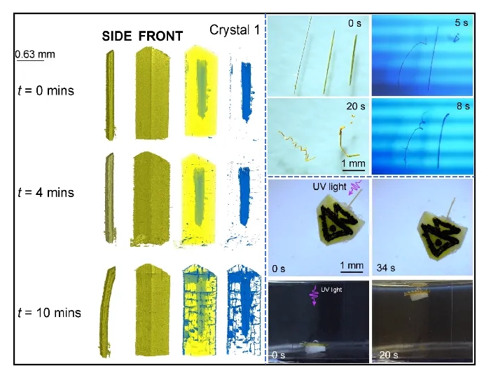 近日,青島大學(xué)化學(xué)化工學(xué)院王國(guó)明教授團(tuán)隊(duì)在光機(jī)械響應(yīng)晶體領(lǐng)域取得重要研究進(jìn)展,研究成果以“Bending, Twisting, and Propulsion of Photoreactive Crys...