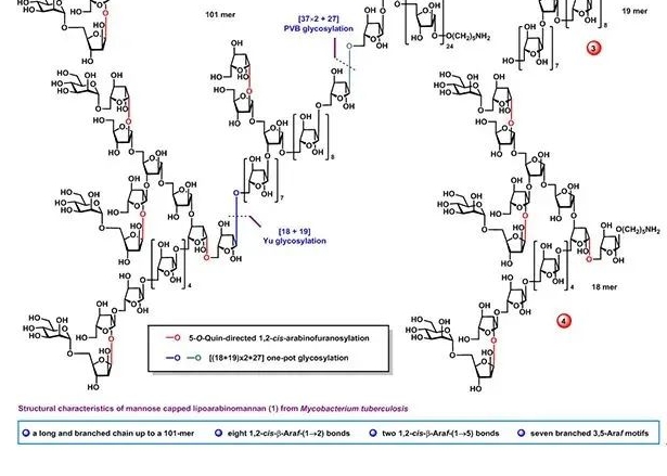 昆明植物所完成結(jié)核分枝桿菌甘露糖帽脂阿拉伯甘露聚糖101糖的一鍋法合成
