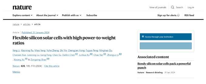 江蘇科大、隆基綠能、科廷大學(xué)合作,在國際頂刊Nature發(fā)文