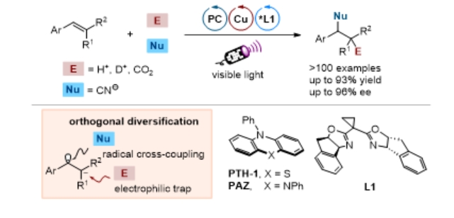 近日,華中師范大學肖文精/陳加榮團隊利用光氧化還原催化與銅催化協(xié)同的催化模式,實現(xiàn)了芳基烯烴經(jīng)由自由基陰離子過程的高對映選擇性氫氰化、氘氰化以及羧基氰基化反應。相關成果發(fā)表在JACS上。文章鏈接DOI...
