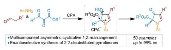 多組分反應(MCRs)是獲得結構多樣性和復雜性產(chǎn)物的高效便捷途徑,在過去十幾年中,得益于手性有機催化劑和手性金屬催化劑的發(fā)展,不對稱多組分反應(AMCRs)得到了廣泛研究。然而,不對稱多組分重排反應研...