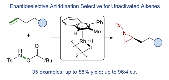 近日,韓國科學技術院Mu-Hyun Baik與美國埃默里大學Simon B. Blakey課題組報道了一種平面手性銠茚基催化劑促進非活化末端烯烴的對映選擇性氮雜環(huán)丙烷化反應(aziridination...