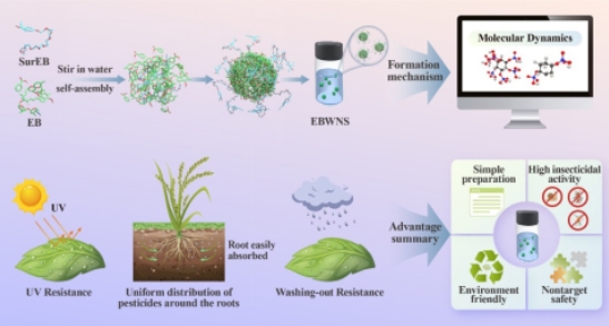 中國農(nóng)業(yè)科學院農(nóng)業(yè)環(huán)境與可持續(xù)發(fā)展研究所多功能納米材料及農(nóng)業(yè)應用創(chuàng)新團隊基于化合物構效關系設計并合成了一種醇醚類小分子化合物,建立了難溶性農(nóng)藥的綠色水基化納米載藥系統(tǒng),在不同作物上實現(xiàn)了有害生物綠色防...