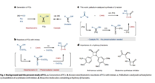 近日,日本大阪大學(Osaka University)Mamoru Tobisu課題組發(fā)展了在鈀催化下,利用芳酰基硅作為Fischer-卡賓絡合物前體的反應體系。該體系可用于與亞胺的催化羰基化環(huán)加成反...