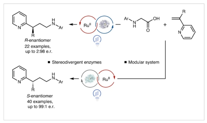 近日,美國(guó)普林斯頓大學(xué)(Princeton University)Todd K. Hyster課題組報(bào)道了通過在黃素(flavin)依賴性“烯”還原酶中添加外源的Ru(bpy)32+輔助因子,可以以優(yōu)...