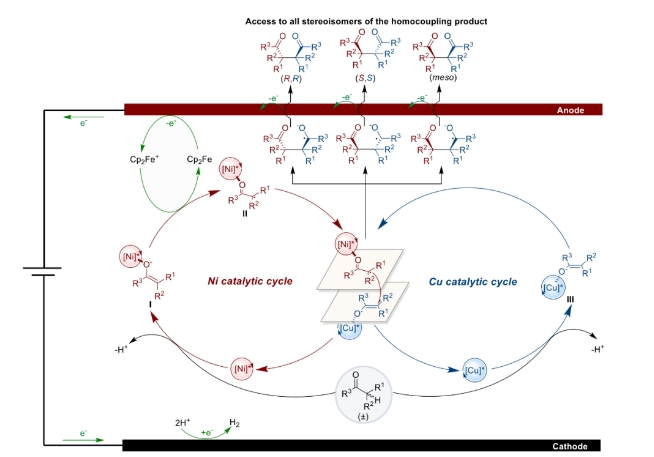 近日,中國(guó)科學(xué)技術(shù)大學(xué)郭昌教授課題組電氧化促進(jìn)Ni/Cu雙金屬催化立體發(fā)散性自偶聯(lián)反應(yīng)研究取得新進(jìn)展,相關(guān)研究成果發(fā)表在Journal of the American Chemical Society...
