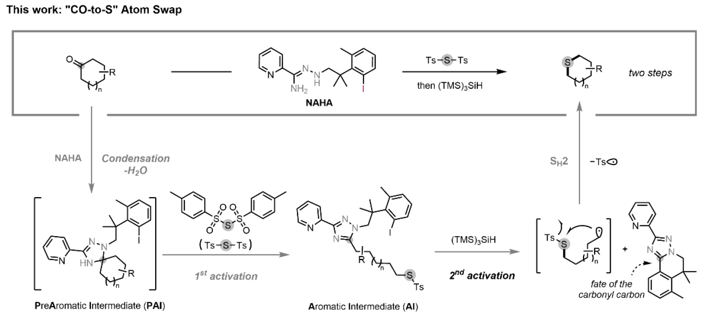 近日,美國芝加哥大學(University of Chicago)董廣彬課題組報道了一種兩步法羰基-硫原子(CO-to-S)交換策略。作者通過合理設計得到了一種N'-烷基-肼酰胺(NAHA)試劑,先后...