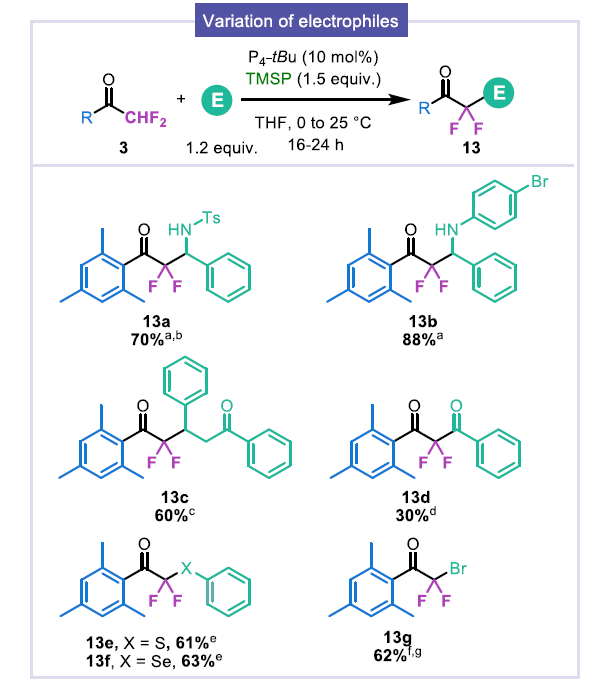 近日,法國(guó)上阿爾薩斯大學(xué)Gilles Hanquet課題組實(shí)現(xiàn)了α,α-二氟甲基酮的去質(zhì)子官能團(tuán)化,該反應(yīng)利用催化量有機(jī)超堿和硅烷添加劑,可以生成相應(yīng)的二氟烯酸鹽,并用醛捕獲,可以高產(chǎn)率地得到各種α,...