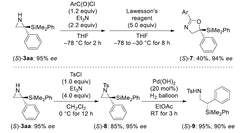 3-取代的2H-吖丙因類化合物可以被看作環(huán)酮亞胺,硅親核試劑與酮亞胺的高對映選擇性加成反應(yīng)此前未見報道。近日,柏林工業(yè)大學(xué)Martin Oestreich課題組使用硅基硼酯作為硅親核試劑,利用銅催化首...