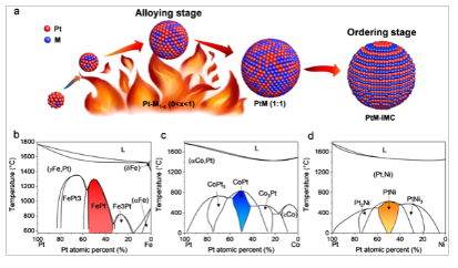 近日,中國(guó)科學(xué)技術(shù)大學(xué)梁海偉教授課題組使用原位X射線衍射技術(shù)研究了金屬間化合物(IMCs)催化劑在高溫下的形成機(jī)制,理解了相變溫度依賴的結(jié)構(gòu)演變過(guò)程,并通過(guò)拆分合金化和有序化步驟,實(shí)現(xiàn)了高度有序鉑基合...