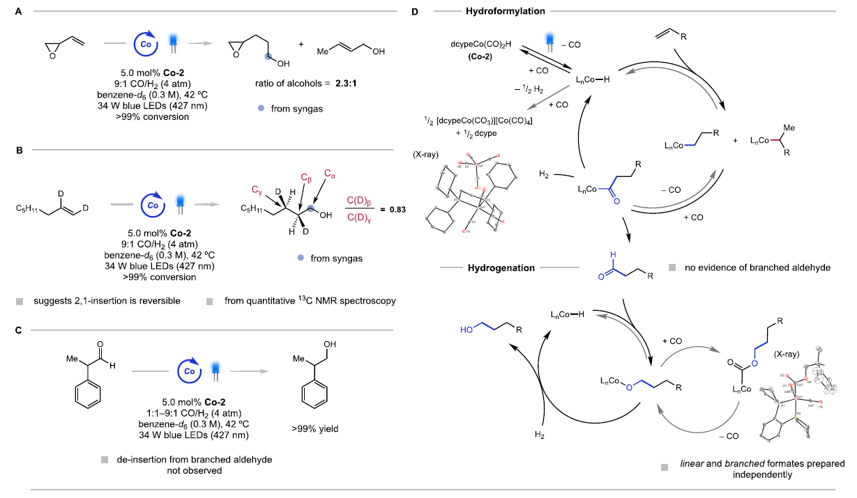 近日,美國普林斯頓大學(xué)Paul J. Chirik課題組發(fā)展了一種末端烯烴和1,1-二取代烯烴的鈷催化還原氫甲?;磻?yīng)。該反應(yīng)從CO和H2直接合成了多一個碳單位的醇,高區(qū)域選擇性地合成了 (線式/鏈?zhǔn)?..