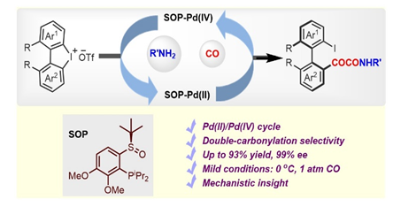 近日,四川大學(xué)化學(xué)工程學(xué)院廖建教授團隊發(fā)展了一種以手性亞砜膦/鈀絡(luò)合物為催化劑,通過高價鈀催化途徑的不對稱胺羰化新策略。相關(guān)研究成果“Enantioselective double carbonyla...