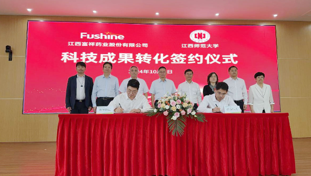 近日,江西師范大學(xué)與江西富祥藥業(yè)股份有限公司舉行科技成果落地轉(zhuǎn)化合作簽約儀式。江西省委教育工委委員、省教育廳副廳長王勇,省科技廳二級巡視員郭建平,省工信廳二級巡視員楊金娥,景德鎮(zhèn)市高新區(qū)管委會主任、昌...