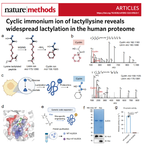 2022年6月27日,Nature Methods期刊在線發(fā)表了中國藥科大學(xué)郝海平/葉慧團隊的最新研究工作成果(Cyclic immonium ion of lactyllysine reveals ...