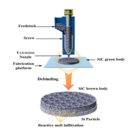 近日,中國科學院上海硅酸鹽研究所黃政仁研究員團隊陳健副研究員首次提出高溫熔融沉積結合反應燒結制備SiC陶瓷新方法。在3D打印碳化硅陶瓷研究中取得新進展,相關研究成果發(fā)表在Additive Manufa...