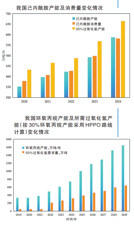 2023年,兩套12萬噸/年過氧化氫工業(yè)裝置在湖南石化順利開車,另有6套裝置正在設(shè)計或建設(shè)中,為下游化工產(chǎn)品提供原料保障。