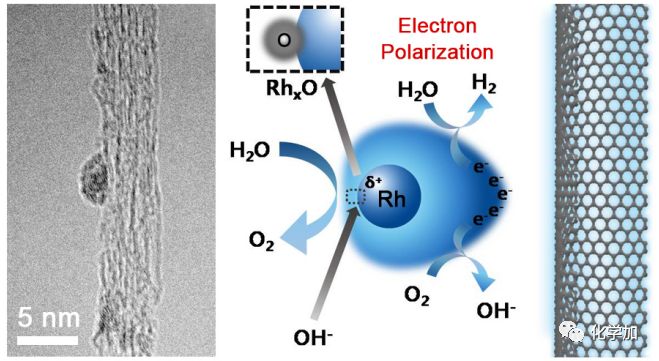 圖2.Rh/SWNTs界面處電極極化效應(yīng)及其效果示意圖
