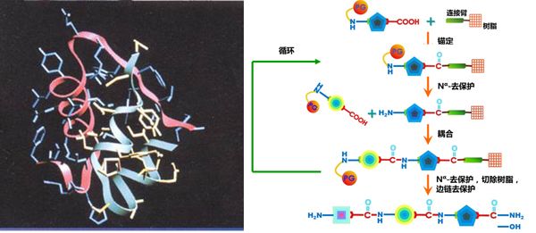 圖1 從人工全合成牛胰島素到固相多肽合成技術(shù)的發(fā)明,合成化學(xué)促進了生命科學(xué)的發(fā)展
