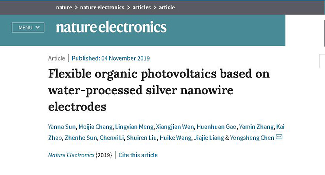 導(dǎo)讀:據(jù)南開新聞網(wǎng)消息,11月4日,國際頂級學(xué)術(shù)期刊《自然·電子》(Nature Electronics)刊發(fā)了南開大學(xué)化學(xué)學(xué)院陳永勝教授團隊的研究論文,介紹了他們在柔性透明電極與柔性有機太陽能電池領(lǐng)域研究中獲得的突破性進(jìn)展。