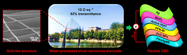 柔性電子器件,特別是基于有機材料的光電器件,是未來電子器件發(fā)展的一大趨勢,具有巨大的應(yīng)用前景?!捌渲校@得高性能的柔性透明電極是實現(xiàn)高效柔性有機光電器件的前提,也是目前該領(lǐng)域的核心難題。但是,如何獲得同時具有高導(dǎo)電、高透光、低表面粗糙度以及制備方法簡單、綠色的柔性透明電極依然是巨大的挑戰(zhàn)?!标愑绖僬f。
