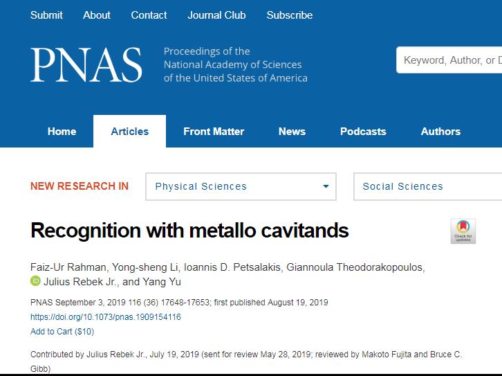 李永生同學(xué)參與研究的方向是超分子化學(xué),水溶性杯芳烴的合成及其應(yīng)用,合成杯狀的大環(huán)化合物,探索其在分子識(shí)別、化合物分離以及開發(fā)新的化學(xué)反應(yīng)方面的應(yīng)用。李永生同學(xué)師從理學(xué)院化學(xué)系于洋教授和Rebek教授。Julius Rebek教授系美國(guó)科學(xué)院院士、美國(guó)科學(xué)與藝術(shù)學(xué)院院士、瑞典皇家科學(xué)院院士、歐洲科學(xué)院院士、匈牙利科學(xué)院院士,是國(guó)際著名的化學(xué)家和生物有機(jī)化學(xué)家。Rebek教授自2016年12月加入理學(xué)院上海大學(xué)超分子化學(xué)與催化研究中心以來,引薦上海市東方學(xué)者于洋教授于2017年4月加入上海大學(xué),后相繼引薦意大利Manuel博士、巴基斯坦Faiz博士、印度Venkat博士、南開大學(xué)朱玉潔博士和華東師范大學(xué)吳乃偉博士加入上海大學(xué)理學(xué)院博士后流動(dòng)站,招收碩士生李永生等,迅速組建了一支年輕而極富創(chuàng)造力的國(guó)際化研究團(tuán)隊(duì)。