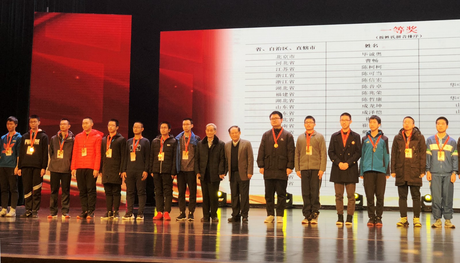 吳養(yǎng)浩院士和段連運(yùn)教授為獲獎(jiǎng)學(xué)生頒獎(jiǎng)(左九 吳養(yǎng)浩 左十 段連運(yùn))