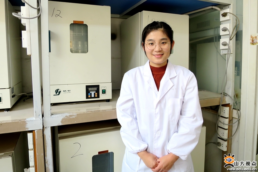 冬日的早晨寒風(fēng)陣陣,明媚的陽光灑在校園里,照在每一個勤奮刻苦的山大學(xué)子身上。在山東大學(xué)化學(xué)新樓的實驗室內(nèi),越過琳瑯滿目的實驗器材,記者見到了被評為“學(xué)術(shù)之星”的張閃閃。她穿著白大褂,正專心敲打著鍵盤,像往常一樣準備開始一天的實驗室生活。