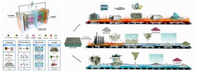 圖1 可充電電池失效機(jī)理(左)和鋰離子電池回收工藝流程(右)