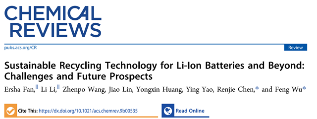 北京理工大學(xué)Chem. Rev.,可充電電池(鋰離子電池及下一代電池新體系)的可持續(xù)性