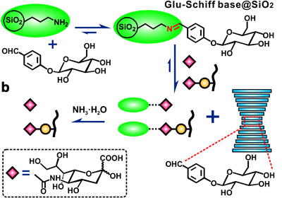 近日,中科院大連化物所生物分離與界面分子機制創(chuàng)新特區(qū)研究組(18T7組)卿光焱研究員團隊和本草物質(zhì)組與組分中藥研究中心(1803組)梁鑫淼研究員團隊提出了一種全新的基于席夫堿水解的動態(tài)共價化學方法,實現(xiàn)了對唾液酸糖鏈的精確捕獲。