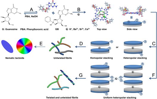 核酸是生命體內(nèi)的必須物質(zhì),由于核酸堿基的生物相容性和降解性特點(diǎn),成為凝聚態(tài)組裝功能材料的重要基元,組裝功能材料已被廣泛應(yīng)用于生物醫(yī)藥、納米技術(shù)和環(huán)境科學(xué)等多個(gè)領(lǐng)域。對于核酸凝聚態(tài)組裝材料的機(jī)理與結(jié)構(gòu)性質(zhì)關(guān)系的研究,既是膠體與界面化學(xué)的基本問題,又是超分子自組裝體系構(gòu)筑功能材料的創(chuàng)新理論基礎(chǔ)。發(fā)表在PNAS上的研究工作,在不同尺度上對金屬離子限域G-四連體的組裝行為提出了新的觀點(diǎn),利用Frank-Oseen彈性能量和Rapini-Papoular各向異性表面能關(guān)系對向列相液晶液滴形成機(jī)理提出了合理的闡釋,同時(shí)對金屬離子配位G-四連體分體堆積方式、纖維形貌、向列相液晶液滴的可控構(gòu)筑,以及凝聚態(tài)材料的流變性能提供新的理解。