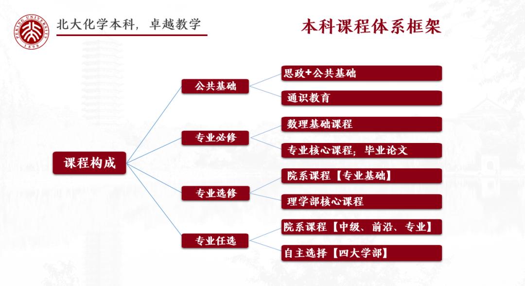 大學的教育不僅是為了傳授知識,更多的是為了建設(shè)起我們的知識體系,并且塑造我們看待世界的世界觀。在北大化院一年級的本科生接受的是通識教育,除了化學之外,同樣要學習數(shù)學、物理、計算機等課程,這可以幫助我們建設(shè)更全面更扎實的知識體系。