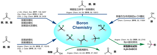 圖1.劉超團隊在有機硼化學導向的含羰分子利用方面的研究工作