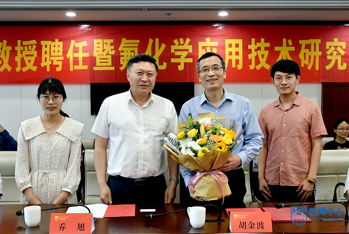 黨委教師工作部常務(wù)副部長、人才資源部副部長秦衛(wèi)明詳細(xì)介紹了胡金波教授的科研經(jīng)歷及其在有機(jī)氟化學(xué)和氟材料領(lǐng)域所取得的卓越學(xué)術(shù)成就。在熱烈的掌聲中,喬旭校長為胡金波教授頒發(fā)了名譽(yù)教授聘書,學(xué)生代表為胡教授佩戴?;詹I(xiàn)上鮮花。