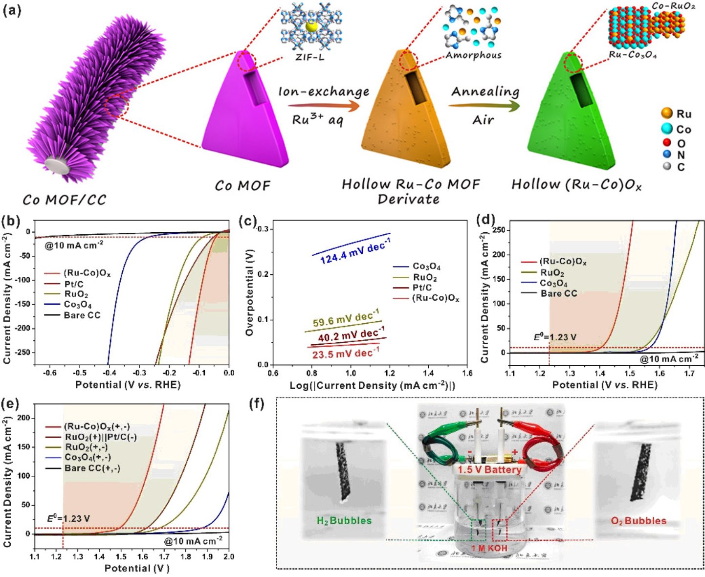 圖1 (Ru-Co)Ox中空納米片陣列應(yīng)用于堿性全電解水