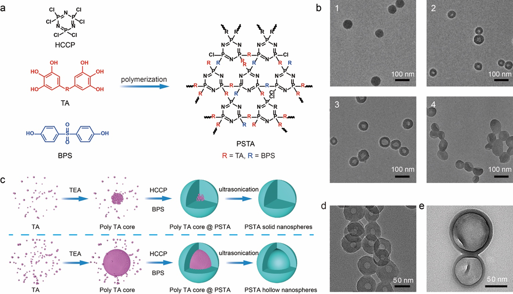 1. 聚磷腈納米球PSTA的制備示意圖及形貌表征