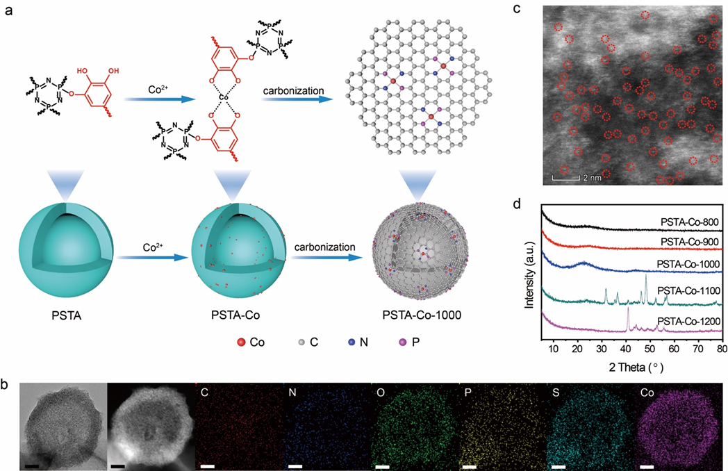 2. 具有鈷-/磷(Co-N/P)活性位點(diǎn)的空心碳納米球的制備及表征