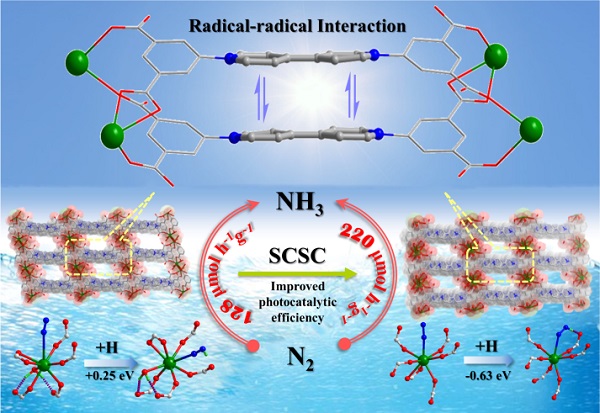 作為20世紀(jì)最重要的發(fā)現(xiàn)之一,Haber-Bosch(HB)工藝的產(chǎn)生曾經(jīng)極大地提高了農(nóng)作物的產(chǎn)量并推動全球經(jīng)濟(jì)發(fā)展,到目前為止,HB工藝仍然是工業(yè)合成氨的唯一途徑。目前探索新型低能耗、環(huán)保的合成氨技術(shù)具有重要科學(xué)意義和工業(yè)應(yīng)用價(jià)值,例如通過光催化技術(shù)直接合成氨氣。金屬-有機(jī)框架(MOFs)材料因其高結(jié)晶性、靈活可調(diào)的多孔結(jié)構(gòu)以及易修飾等特性,成為一類極具應(yīng)用前景的光催化固氮材料。