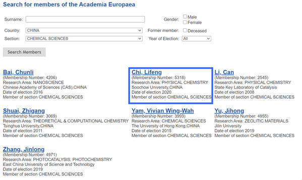 根據(jù)官網(wǎng)公布顯示,截至2020年8月29日,歐洲科學院共有院士4381位,含化學科學領域院士244位,共有43位中國學者入選歐洲科學院外籍院士,其中化學學科7位。
