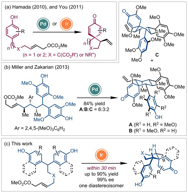 圖1 銥催化苯酚衍生物不對稱烯丙基去芳構(gòu)化反應(yīng)