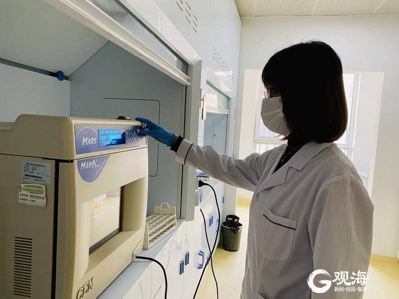 雖然聽上去很簡單,但稱量起來并不是那么容易,因為每份樣品的重量都需要非常精確。記者發(fā)現(xiàn),用來稱量的精密天平與平時常見的天平樣式不同,是一個四四方方的透明小盒子,白色的消解罐就豎直放在天平的正中央?!斑@種天平的精密度更高,咱們普通家用的天平一般最多精確到小數(shù)點后兩位,而這種天平可以精確到小數(shù)點后四位,也叫做萬分之一天平?!边t少云說。另外,用來取樣的取樣器也很不一般,形狀類似滴管,每抽取一次就是約0.5克。