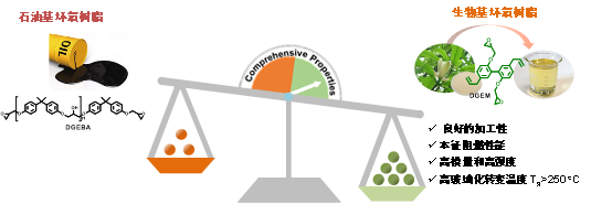 圖1 三嗪環(huán)生物基環(huán)氧樹脂THMT-EP與石油基雙酚A型DGEBA的性能比較